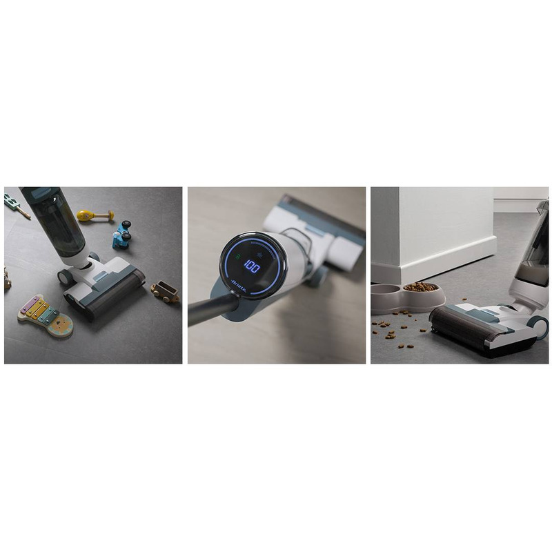 Zařízení nabízí tři režimy sání – ECO, MAX a Pouze sání – které si zvolíte dle aktuální potřeby. V režimu ECO zvládne úklid až 35 minut, v režimu MAX si poradí i s mastnotou nebo přischlými nečistotami. Kombinovaný vysavač automaticky upozorní na plnou nádrž špinavé vody i potřebu doplnění čisté. Ovládání je intuitivní a informace jsou přehledně zobrazeny na displeji.