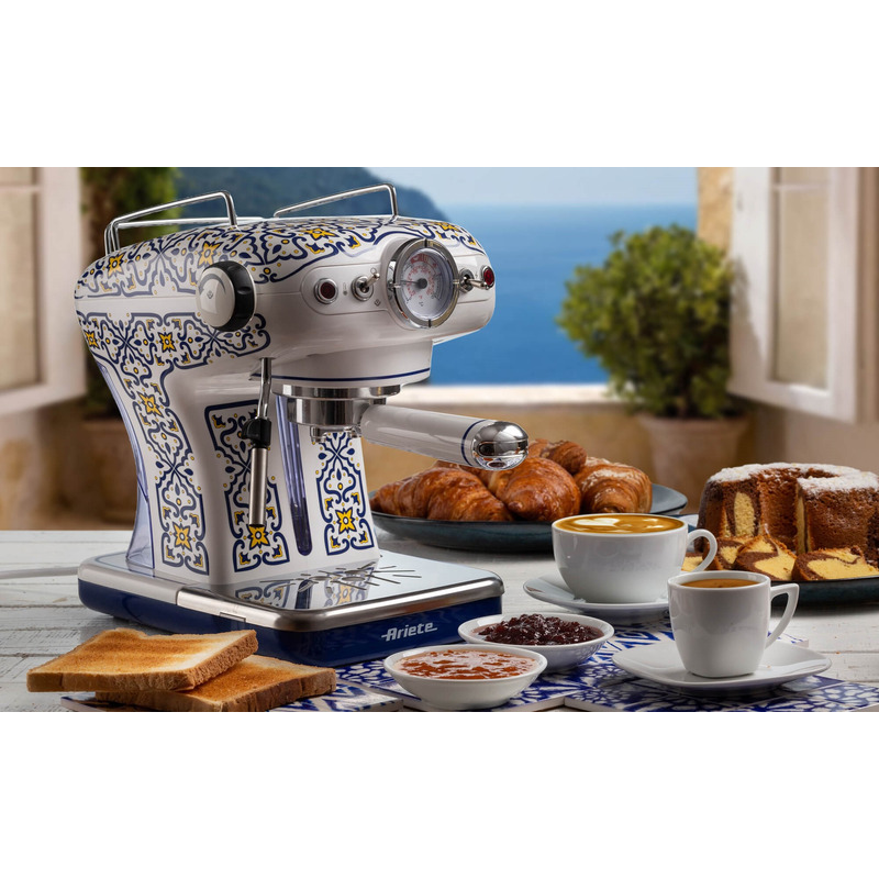 Model Ariete 1389 je součástí kolekce Capri a vyznačuje se elegantním vzhledem inspirovaným středomořskými barvami a liniemi. Svěží modrý odstín a jemné křivky oživí každou kuchyni a navodí atmosféru letní Itálie. Tento kávovar s napěňovačem není jen funkčním spotřebičem, ale i stylovým doplňkem domácnosti.