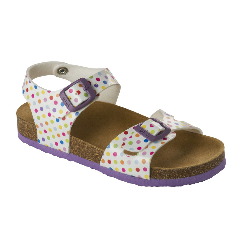 Scholl SMYLEY KID dětské zdravotní sandály bílé s ergonomickou stélkou Bioprint. Nastavitelné pásky, korek a pryž, ideální i do školy nebo na doma.