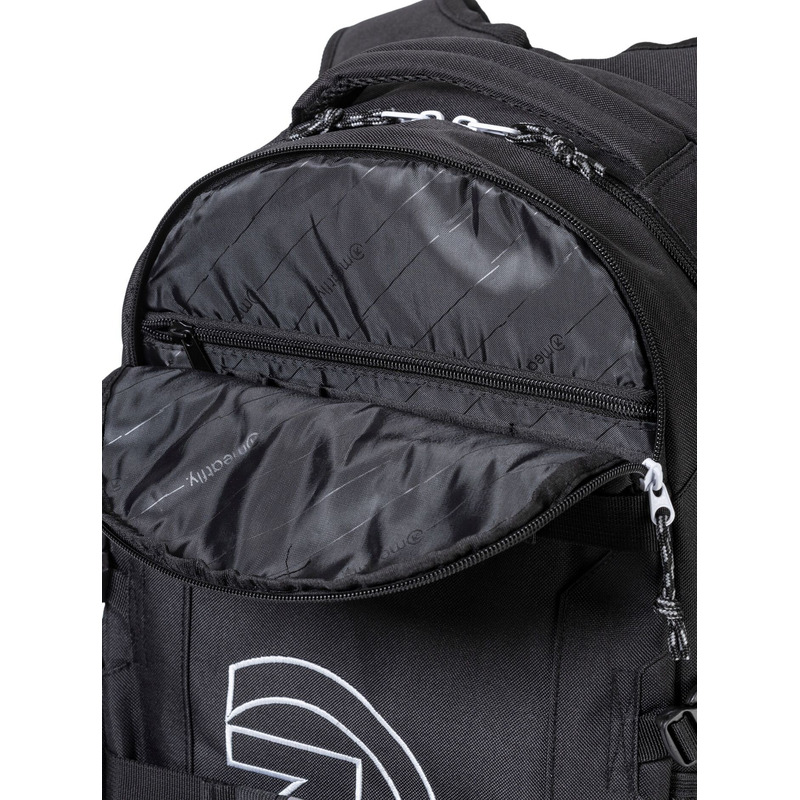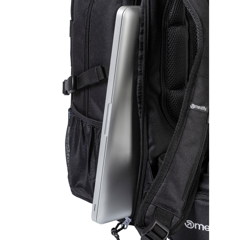 Školní batoh Meatfly Ramble Black 26 l s pláštěnkou, reflexními prvky a kapsou na 15" notebook je ideální pro střední školu i každodenní nošení.