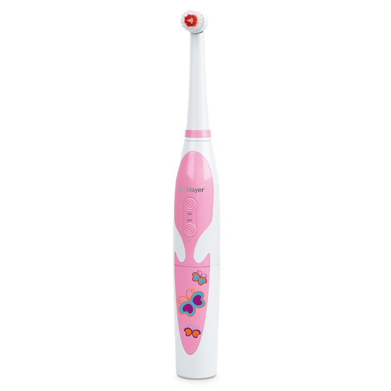 Dětský rotační elektrický zubní kartáček Dr. Mayer GTS1000K v růžové barvě, který má jemné štětiny a je vytvořený speciálně vytvořený pro děti. Kartáček má pohodlnou rukojeť, která padne do všech dětských rukou.